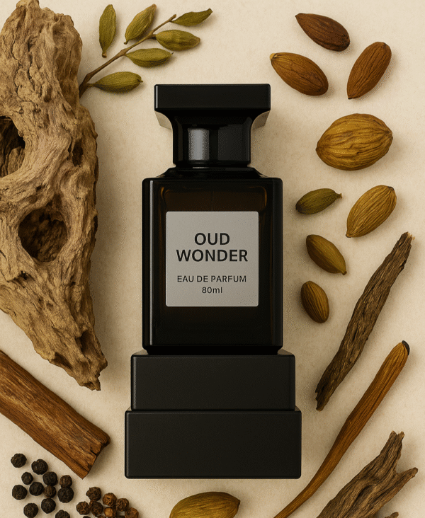 Découvre Oud Wonder, un parfum qui allie élégance et mystère. Ce boisé et épicé t’accompagnera avec style, jour et nuit.